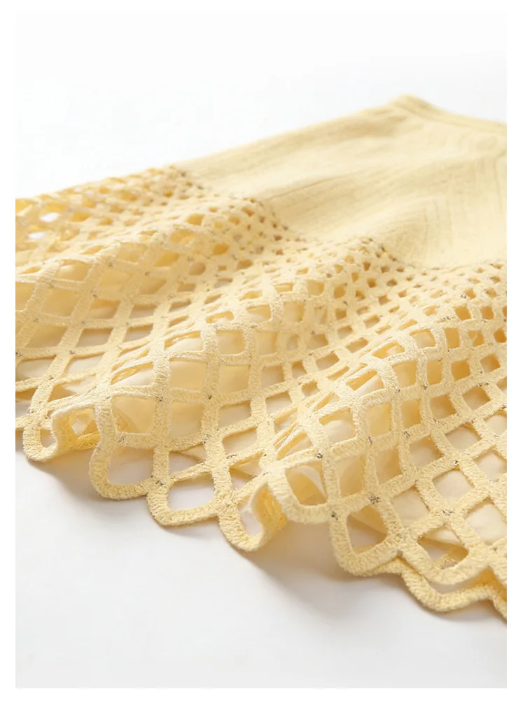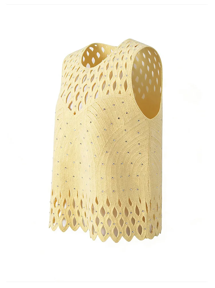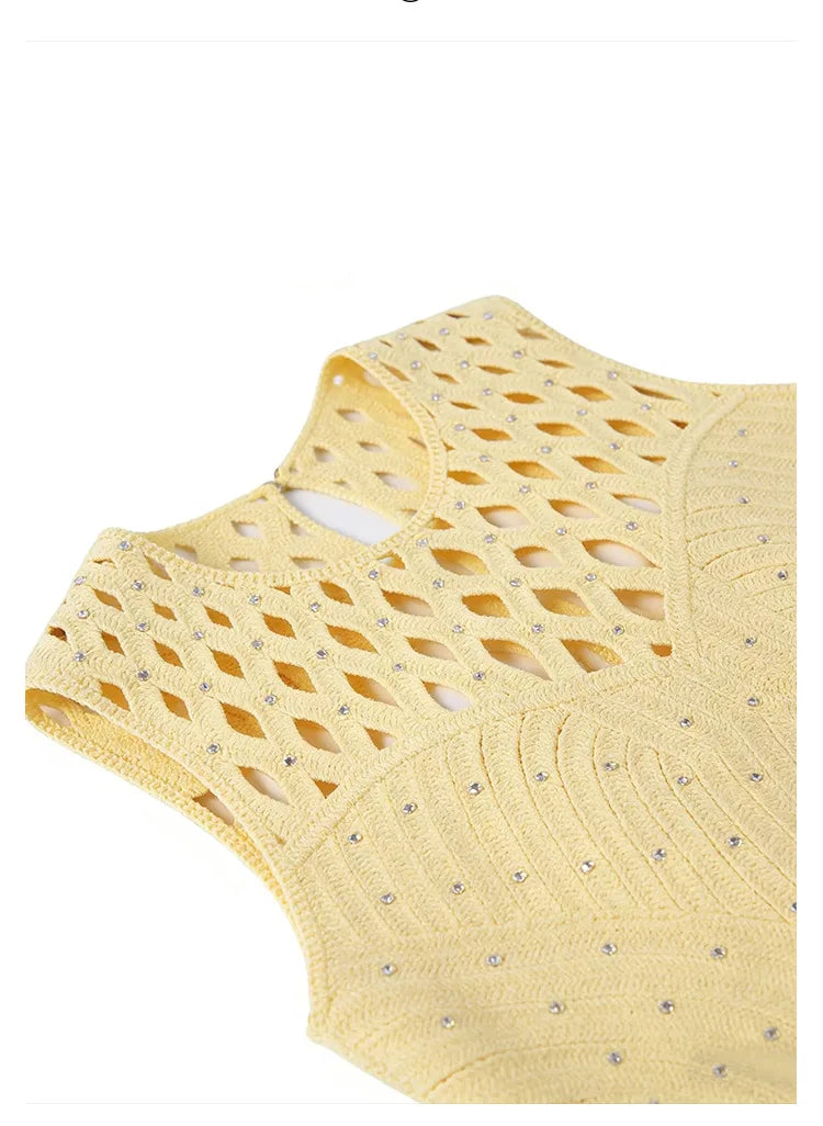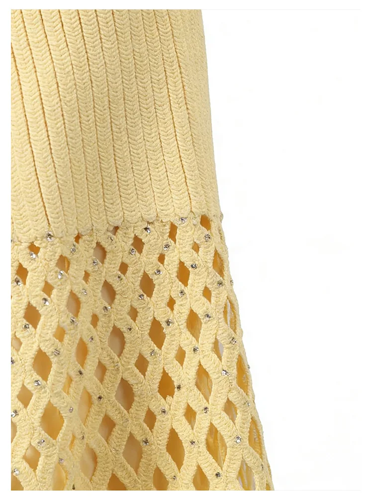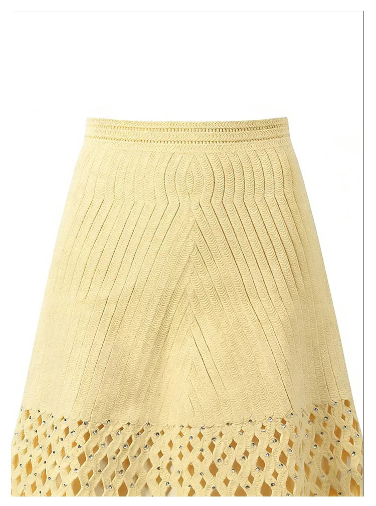 Women's French Vacation Style Hollow Out Rhinestone Knitted Vest + Skirt Set